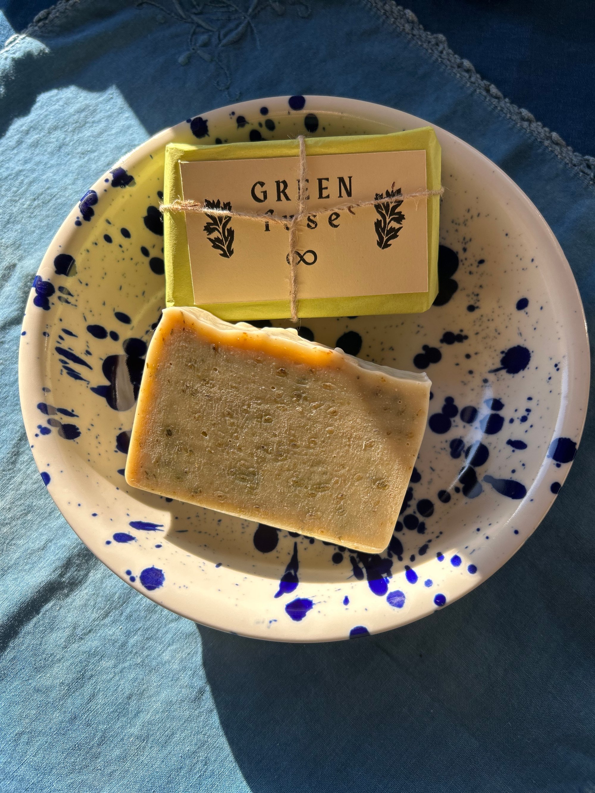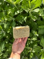 Raw creamy goats milk infused with dewy spring tips of Mugwort in a cold process soap bar. This deep cleaning sudsy bar is moisturizing and gentle on skin. A touch of lanolin seals in all the goodness and helps protect the skins natural barrier. Gentle enough for face and body.