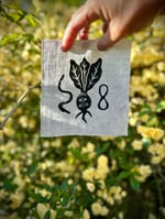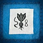 Hand stamped patch painted on 100% linen and naturally dyed with Corn husk. Design may fade a little over time but is washer and dryer safe.